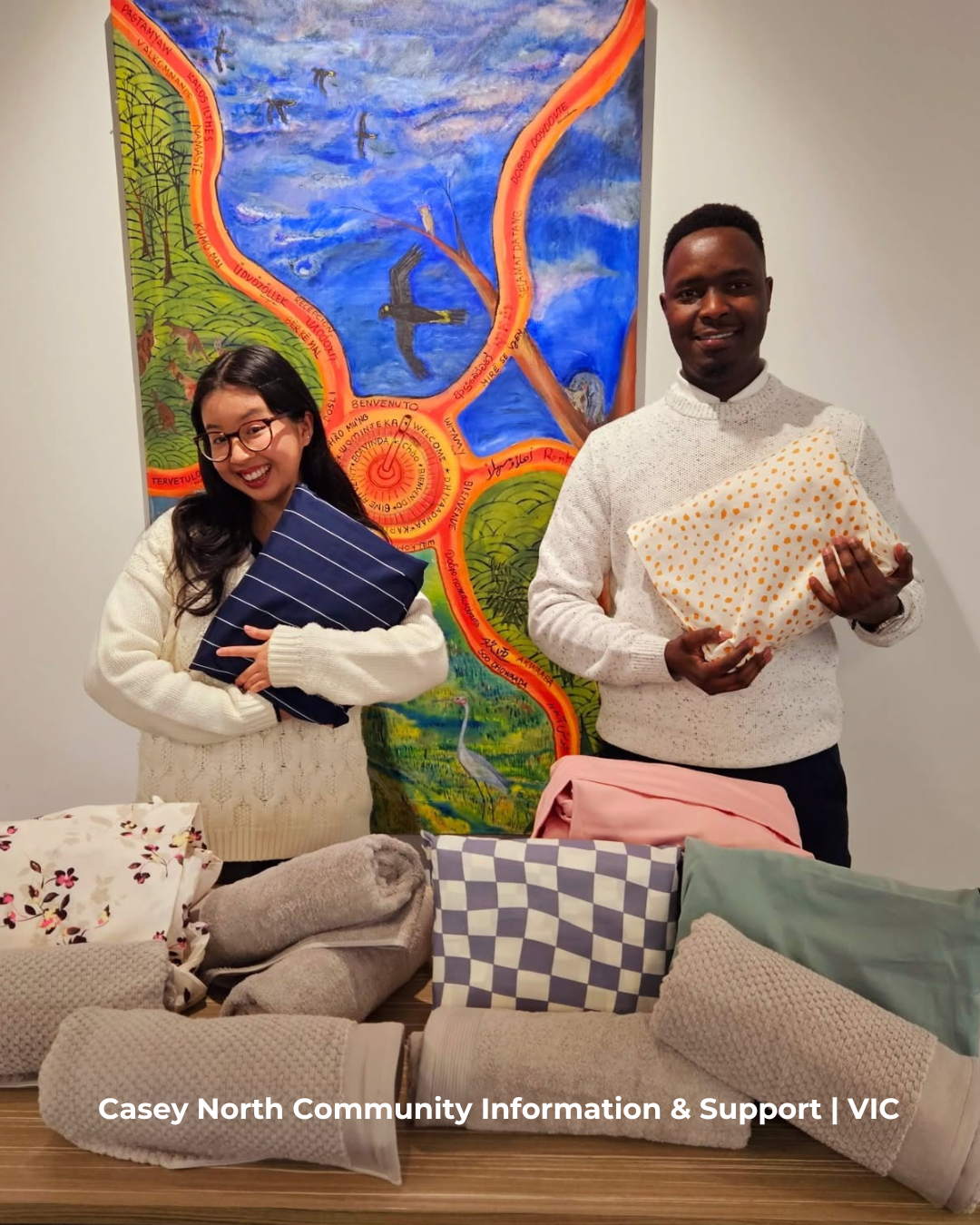 “The impact of being provided with a lovely quality sheet set and a towel when moving into temporary or permanent accommodation provides our community members with dignity, a little luxury during a difficult time, a little respite to their limited financial resources and is a tangible way to show that their community cares.”– Deirdre from Geelong Zero, Neami National